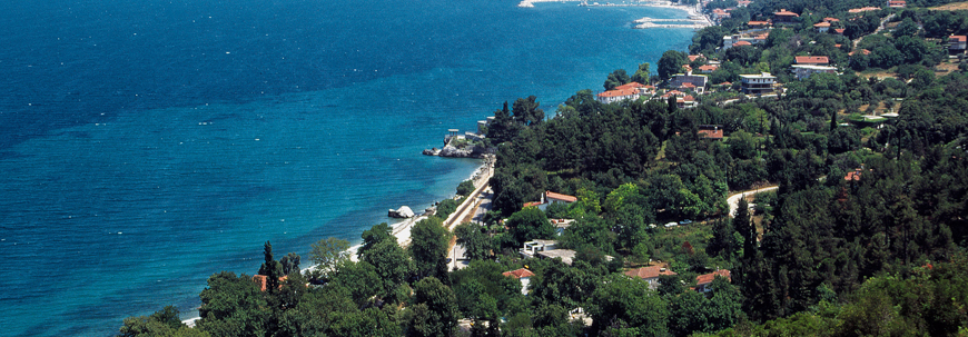 Βροντού. Κτισμένο κοντά στο ρέμα της Αγ. Τριάδας, το χωριό πήρε το όνομά του από τη δυνατή βοή του νερού, που έρεε ορμητικά από τον Όλυμπο. Η Βροντού κατοικείται από απογόνους εντοπίων γεωργών (Γκραίκοι) και νομάδων κτηνοτρόφων (Κοπατσάρηδες). Σε μικρή απόσταση από το σύγχρονο χωριό και σε υψόμετρο 400 μ. βρίσκεται η Παλιά Βροντού, από την οποία σώζεται σε καλή κατάσταση μόνο ο διατηρητέος ναός του Αγ. Νικολάου.